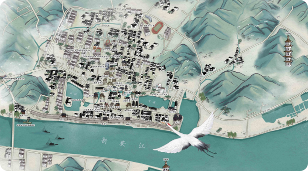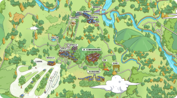 根据景区平面图,按园区布点绘制手绘地图,在导览地图中可以显示景区中的景点信息、景点和景点之间的路径,也可以显示景区的关键地点信息,比如厕所、小卖部、售票处、景区出入口等信息。